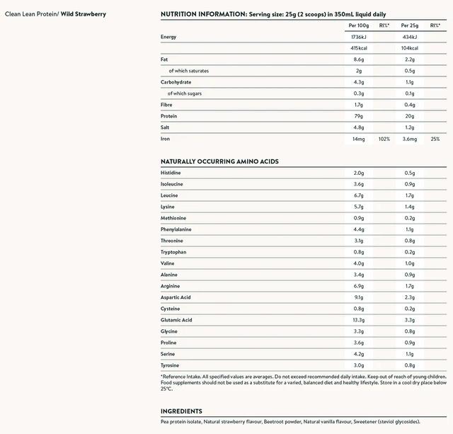Made from the highest quality European golden peas, Clean Lean Protein is the environmentally friendly choice. Complete with all nine essential amino acids, it is a natural source of iron, tasty and easy to digest.